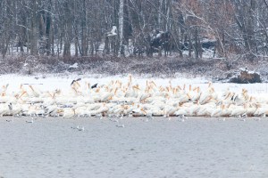 One bird we were looking for and finally found was pelicans. Unfortunately, that day they were on the opposite side of the marina at Lake Carlyle. This is a view of them from a 960mm focal length, which was as close to them as we could get. We kept wishing they’d take flight, but they never did.