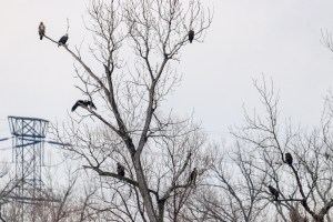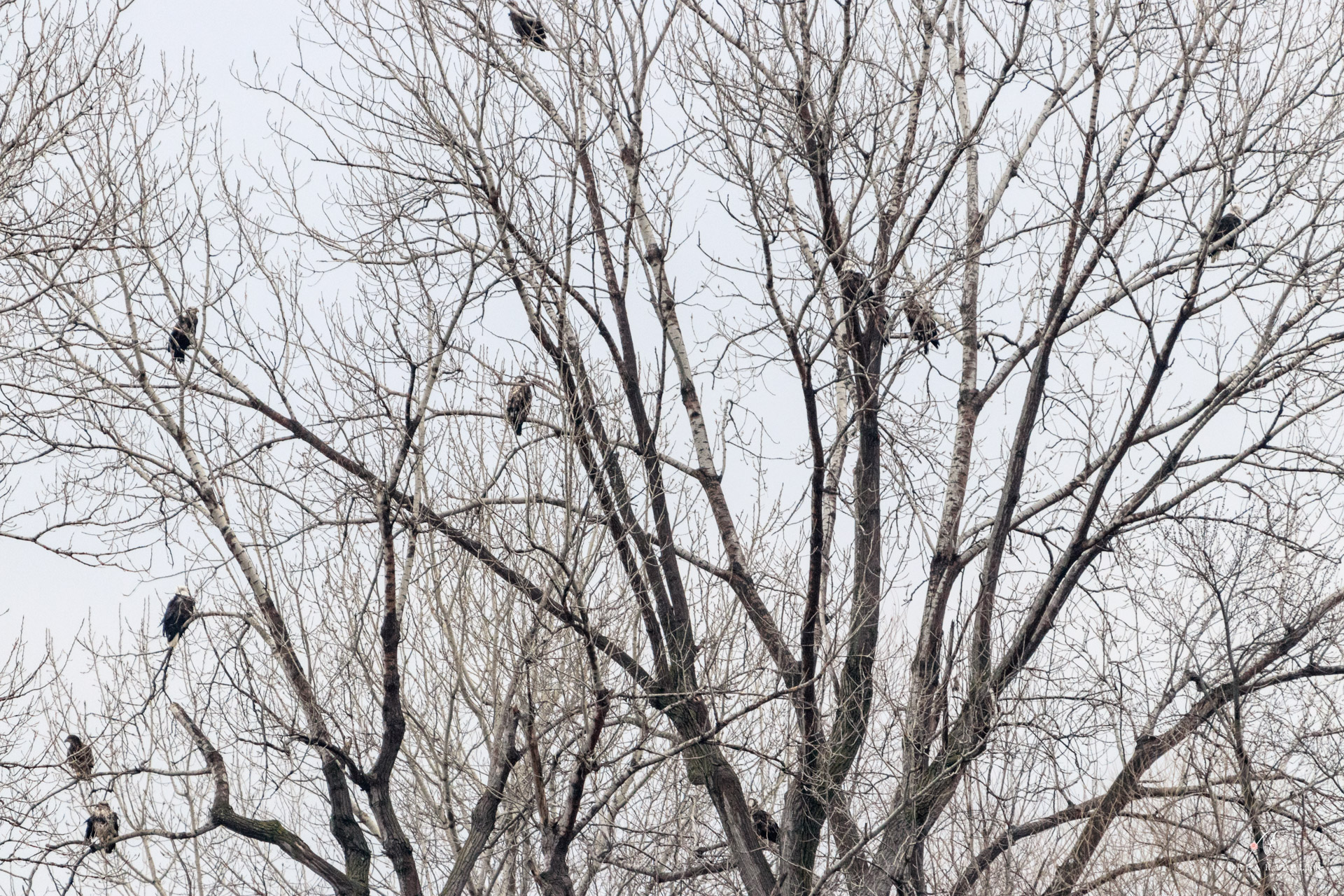 Here’s a close-up shot of some of the eagles in the tree on the right.