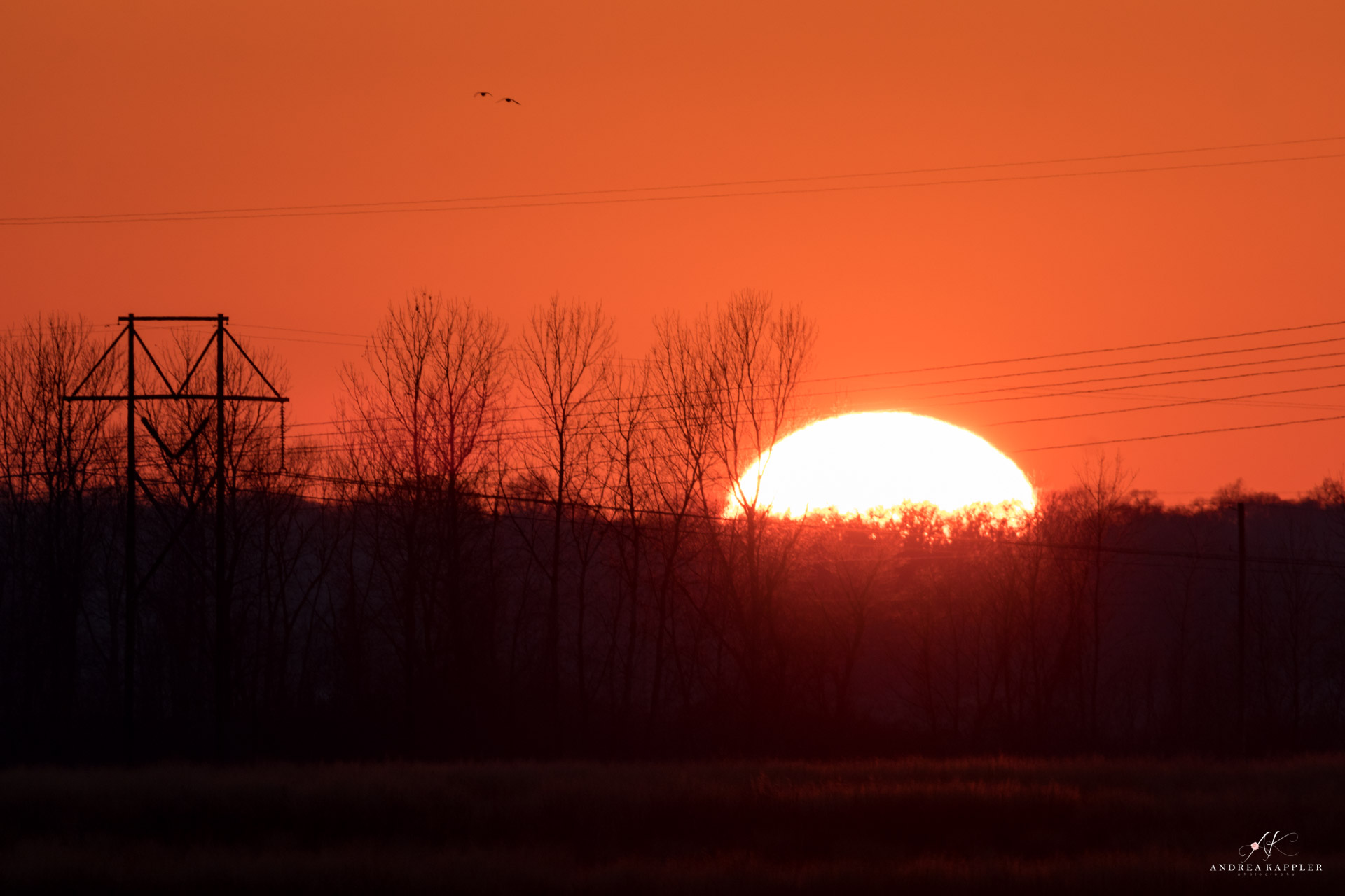 The sun sets in a huge ball of fire in the west in Riverlands. Too bad there were so many power lines in the scene.