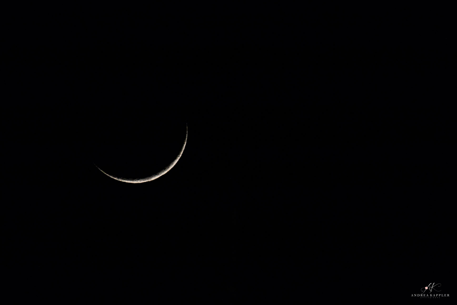 Our day ended with a crescent moon beginning to shine as it set in the west.